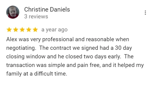 Rather than wait around for months to get an offer, you could have cash for your home quickly or within 24 hours and close within the week. The decision of when to close is in your hands, and we’ll work with you to find the right date based on your desired schedule.